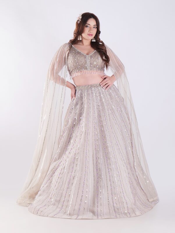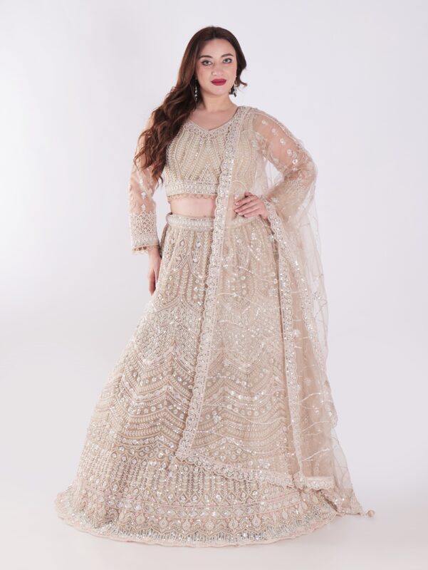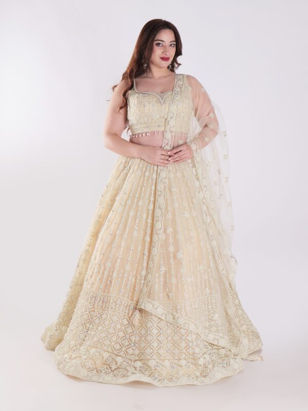 Cream Colored Intricately Embroidered Designer Lehenga Choli Set