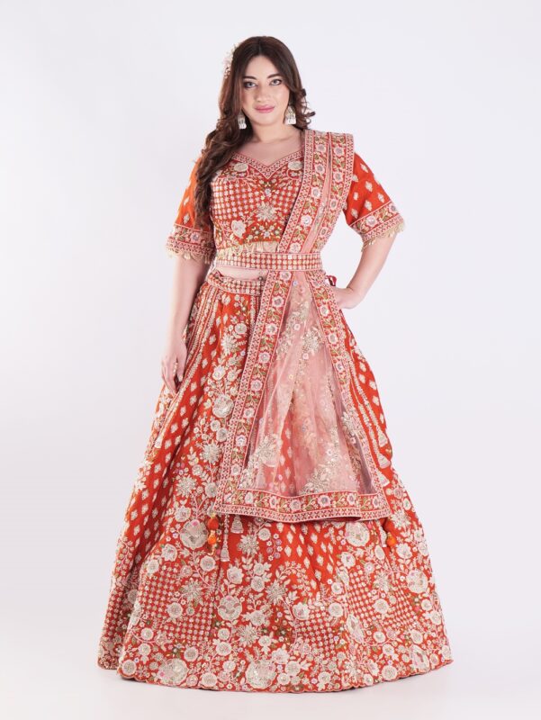 Vibrant Orange Adorned In A Stunning Traditional Indian Bridal Outfit Engagement Luxury Lehenga Set