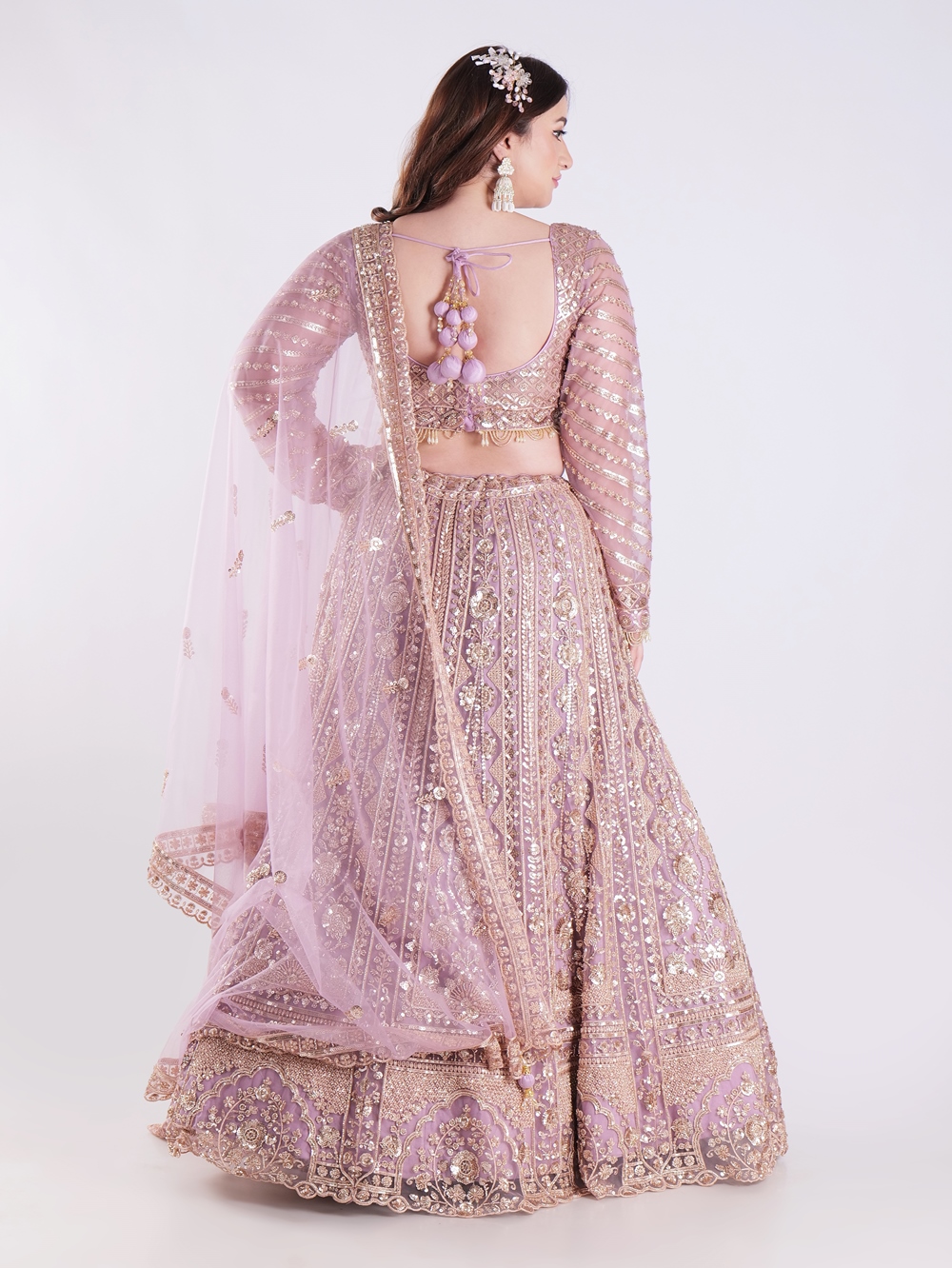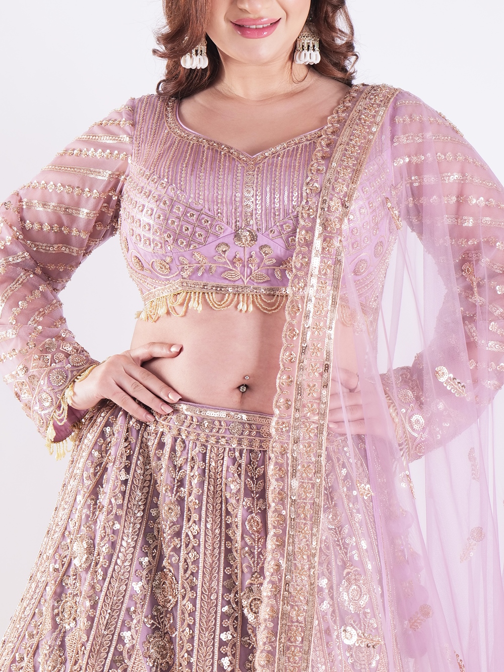 Adorned With Intricate Embroidery And Sequins Light Lavender Bridal Wedding Lehenga Set