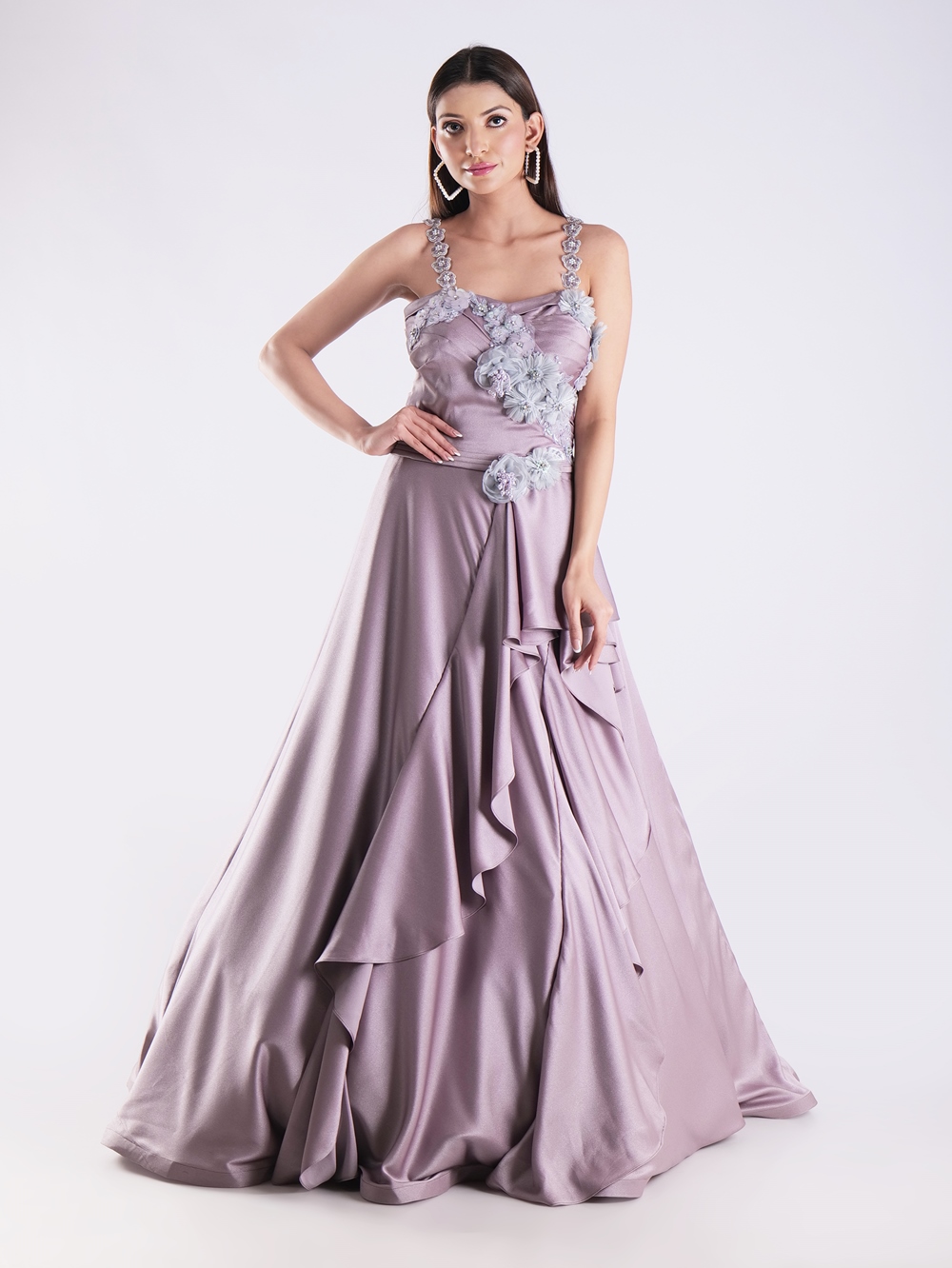 Step into the spotlight with our exquisitely crafted Lavender Embellished Gown, designed to make you feel like royalty at any special occasion. This dreamy evening gown embodies luxurious grace and timeless sophistication, perfect for proms, receptions, weddings, red carpet events, or formal soirées. With its delicate floral details, shimmering satin finish, and flawless silhouette, this gown is a celebration of feminine charm and contemporary couture.